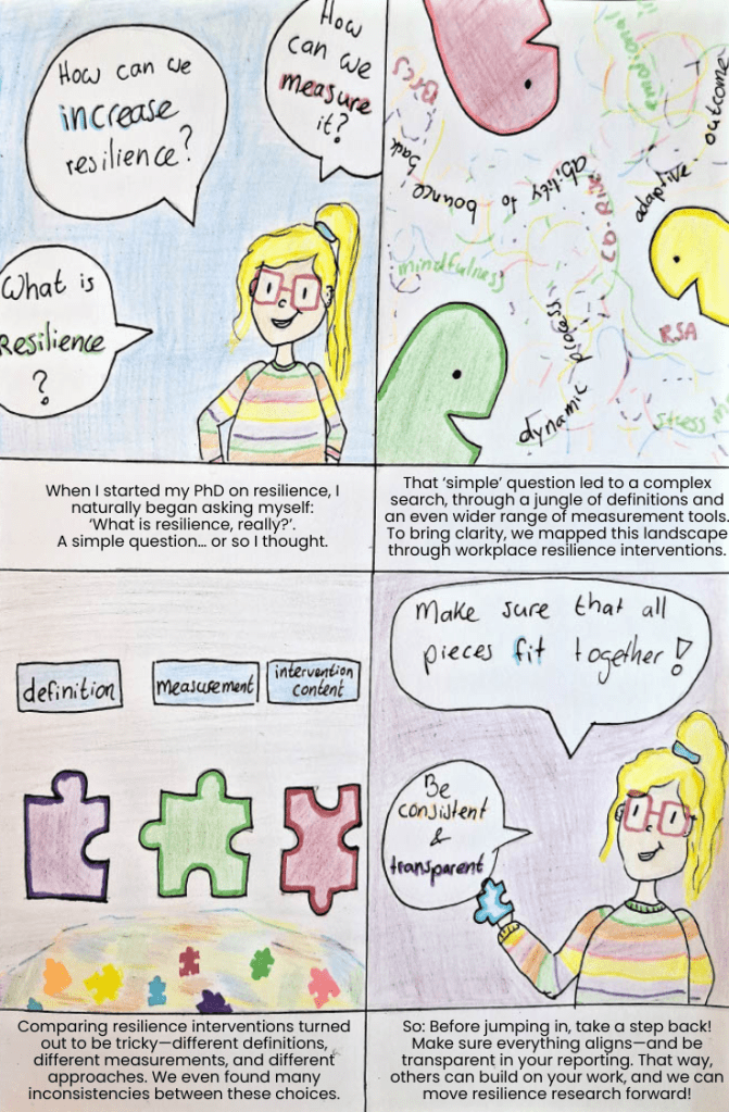 My idea ResearchIN’ Comics received the NWO Synergy Award 2022, an award for the most compelling societal impact idea in the social sciences and the humanities. Research comics are a creative and engaging approach to science communication. Participants do not need any artistic skills to participate in these workshops as I offer examples, templates and tips to guide them.
